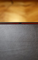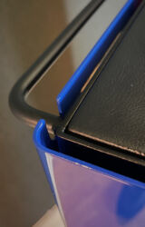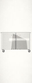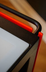 Die Oberplatte, die als Ablage dienen kann, ist mit Leder bezogen (in der Art alter Schreibtische). Sie kann mit einer Leuchtplatte versehen werden, auf der Fotos gezeigt werden können. Die vertikalen Schattenleisten sind mit schwerem Nylon bezogen, um einen diskreten taktilen Eindruck zu geben. Die Schattenleisten können von innen mit sanftem LED-licht belichtet werden.