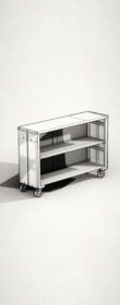 Höhe: 91 cm. Länge (inkl. Handgriffe): 141 cm. Tiefe: 40 cm. Regalhöhe: 34 cm. Regaltiefe: 37 cm. Regalbreite: 124 cm. Industrielle Lenkrollen – Diameter: 10 cm.